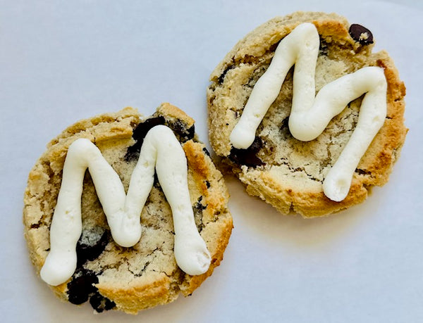 Pure comfort in cookie form. This classic Chocolate chip cookie is baked to perfection with a generous dollop of cream cheese frosting, piped on like a fluffy cloud. Enjoy the generous chunks of real chocolate chips in which I bet you can't eat just one bite.