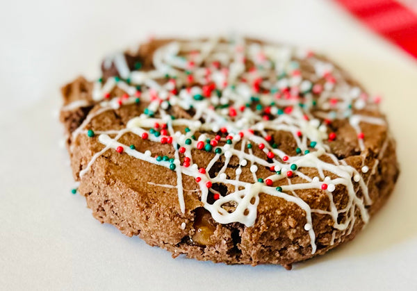Think Rolo’s….in cookie form. The visible oozing salted caramel chunks gives it that gooey, indulgent deliciousness. This caramel cookie is dressed up for the holidays and drizzled with white icing making it melt in your mouth. I bet you just can’t have 1 bite!